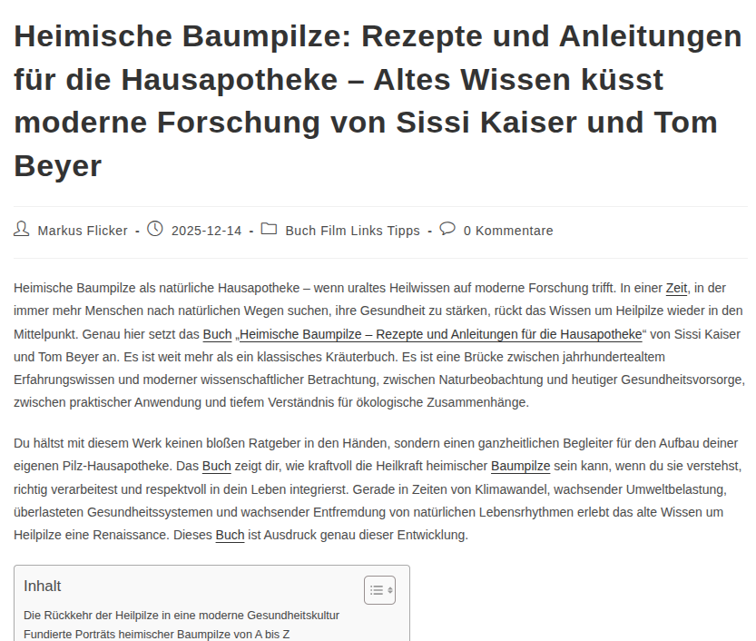 Buch Heimische Baumpilze – Rezepte & Anleitungen für die Hausapotheke, Altes Wissen küsst moderne Forschung